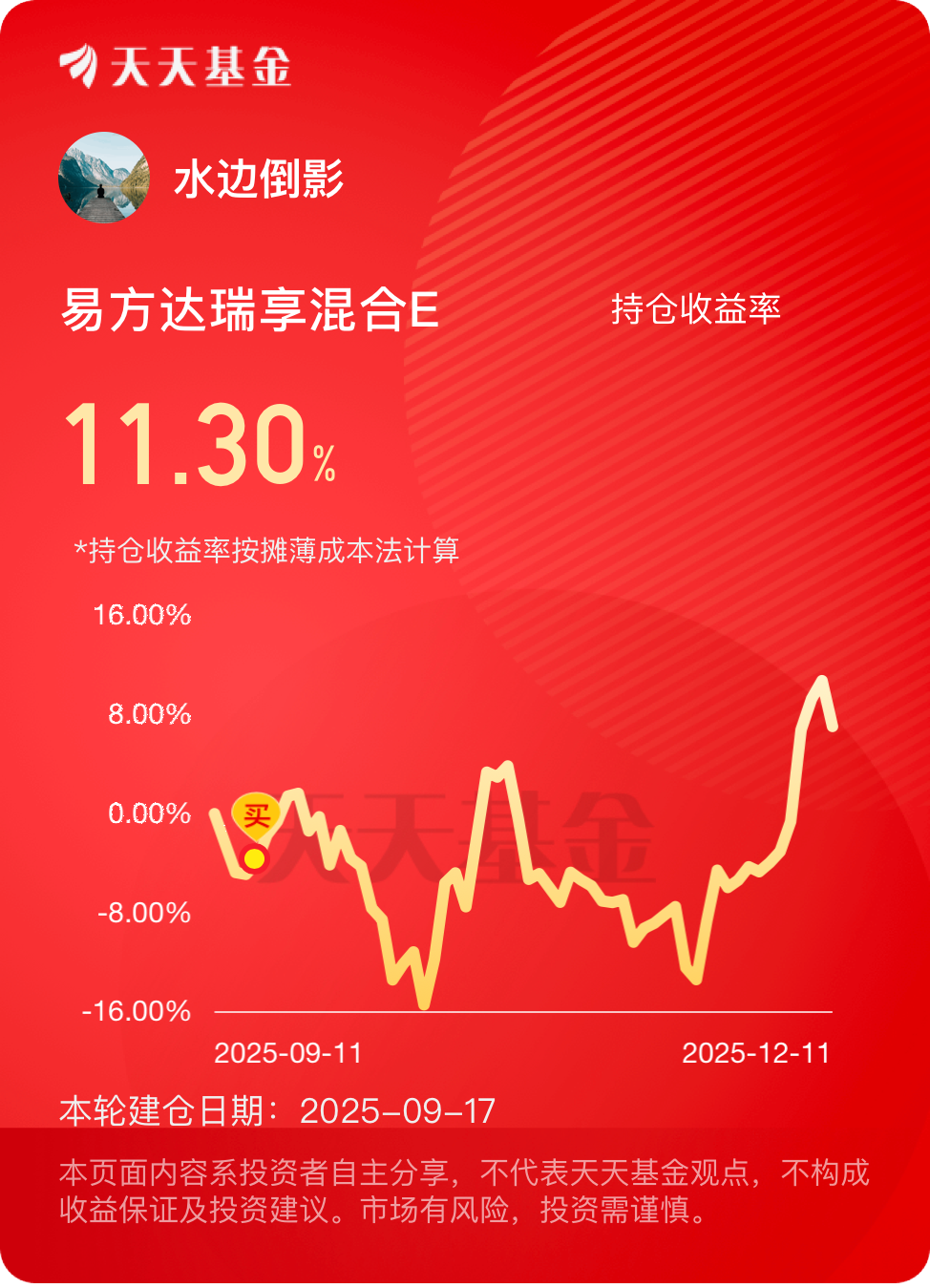 最近科技方向彻底火了,CPO板块重回高点不断冲高,政策上发力算力基建,海外巨头也在加码CPO布局,行业趋势肉眼可见的向上。$易方达瑞享混合E$ 持仓覆盖CPO核心龙头,基金经理对科技赛道的把握很到位,成立以来涨幅超4倍,长期业绩亮眼,我也继续持有,坐等收益在创新高啦!#晒收益#