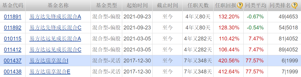 从长期业绩看,易方达瑞享混合I自 2017.12.30以来任职回报高达420.56%,跑赢同类平均高达343%,市场排名第6,超过99%的同类产品;近5年年化收益率25.17%。怎么样?是不是很优秀?