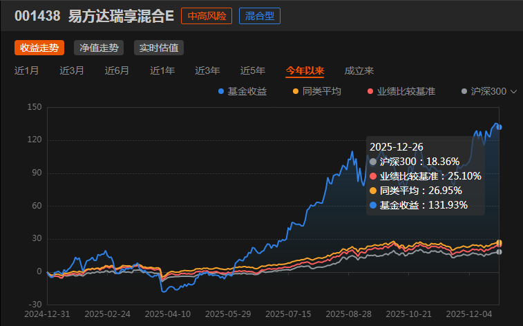 受人工智能的发展影响,算力需求的持续攀升已是确定性长期趋势,这条黄金主线的红利远未耗尽。想精准布局,易方达瑞享混合E不失为优质之选。该基金年内涨幅已攀升至131.93%,持仓深度聚焦算力产业链,尤其是覆盖了CPO等核心细分领域,精准踏中行业风口。