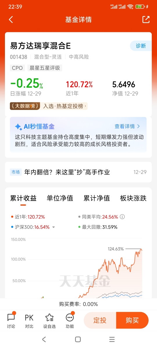 痛定思痛,我决定化身“风向标猎人”:凌晨三点蹲守行业论坛,把券商研报当睡前读物,连做梦都在背“共封装光学(CPO)技术路径图”。终于,皇天不负有心人——我发现$易方达瑞享混合E$ 这类基金,持仓清一色CPO产业链硬核标的,什么光器件、芯片封装、高速连接器,全是“AI军备竞赛”的刚需。更绝的是,这基还能横跨沪深港股,左手抓A股技术突破,右手薅港股估值红利,简直是“吃着火锅唱着歌,就把CPO的钱赚了”。