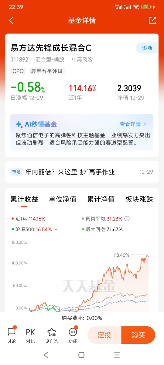 但这次,咱必须“苟住别浪”!隔壁老王追涨杀跌三个月,账户绿成草原,而我默默开启“定投+卧倒”模式:管它K线图上蹿下跳,我自岿然不动。毕竟,CPO不是短线快消品,而是AI算力的“地基”。就像当年错过比特币的人常说:“站在风口上,猪都能飞。”但真相是——飞起来的可能是别人家的猪,而我的猪还在泥潭里扑腾。所以,这次我选择和$易方达瑞享混合E$ 锁死,让专业团队替我找“会飞的猪”。