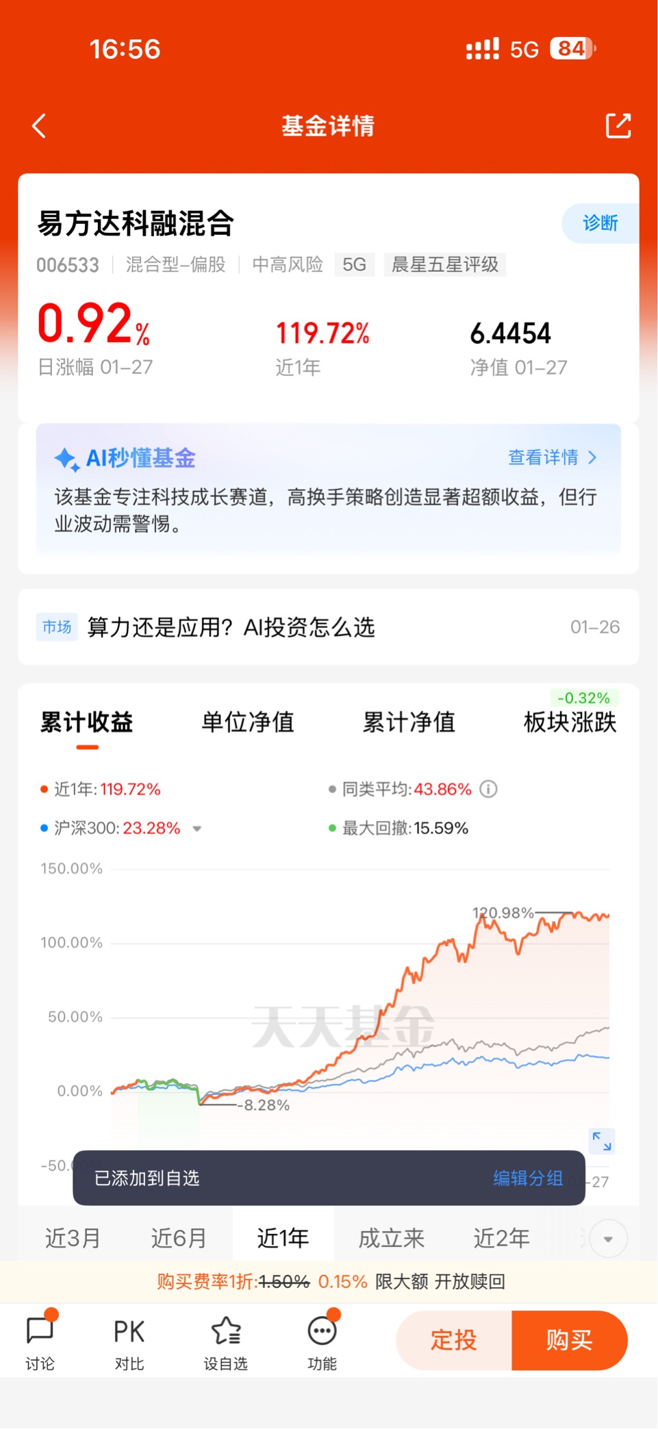 当然,作为一只中高风险的科技主题基金,易方达瑞享混合E的高收益也伴随一定的波动,行业的高度集中让基金净值对科技赛道的波动较为敏感,短期回撤是投资过程中的常态。但对于能够承受一定波动、追求长期成长收益的激进型投资者而言,这只基金的价值不言而喻——它并非简单的热点轮动工具,而是基于产业深度研究的价值投资标的,基金经理对产业趋势的敏锐把握、对标的的精准筛选,让基金具备了长期跑赢市场的潜力。同时,基金当前规模适中,调仓灵活性较强,能够及时把握产业变化带来的投资机会。