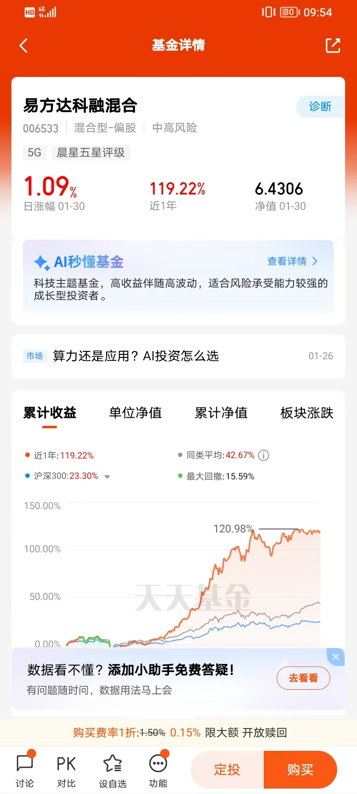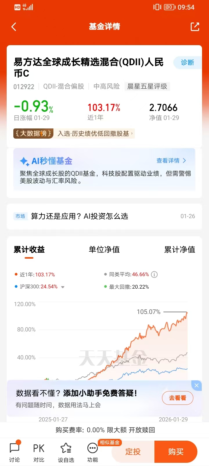费率的数学题:易方达科创50联接A的申购费(通过渠道打折)加上低管理费,持有一年以上的综合成本极低。而C类的销售服务费是按日计提的。如果我打算持有一年以上,A类就是最优解。