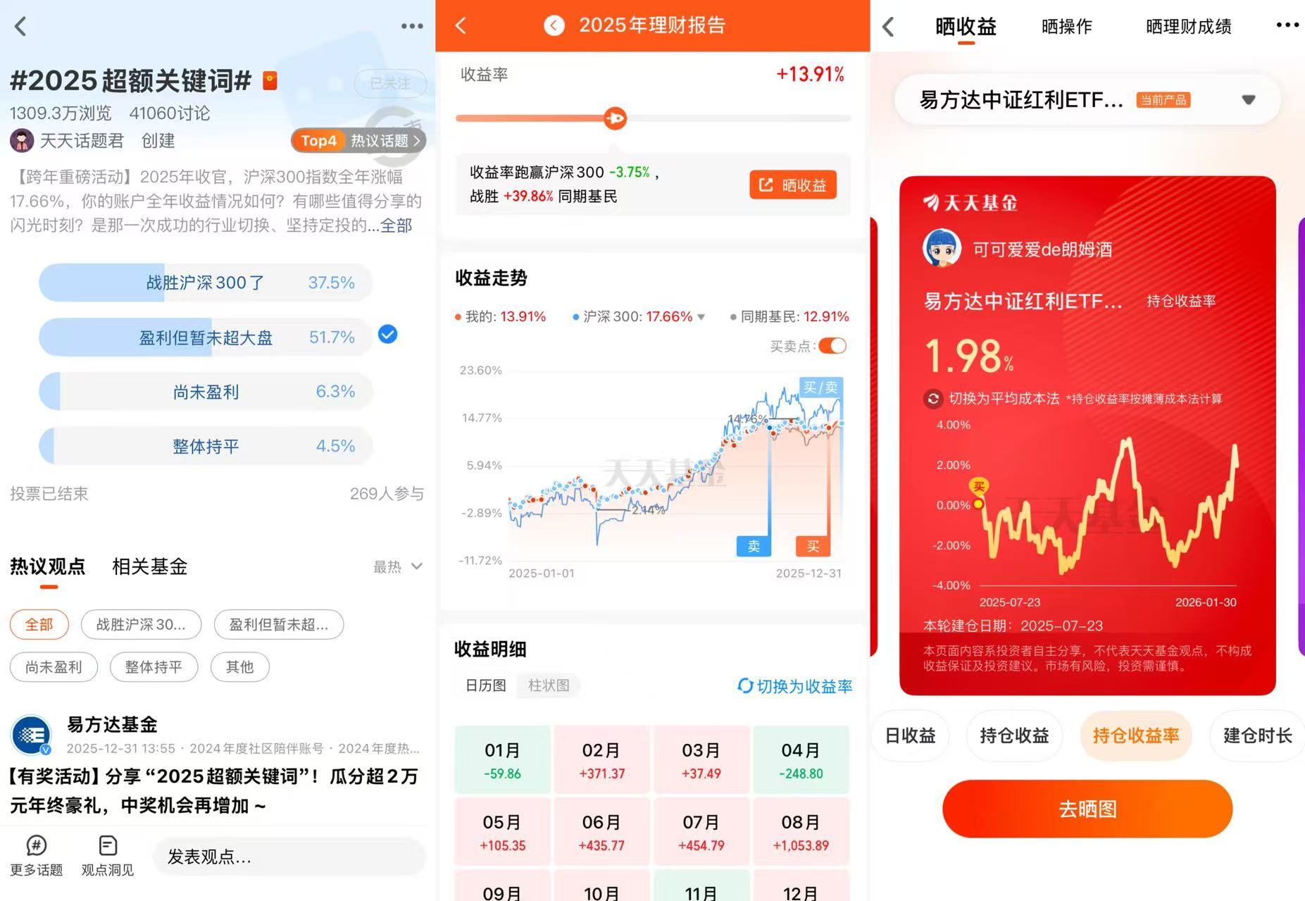 #2025超额关键词#2025年我的超额关键词是乘风破浪。2025年A股走出结构性牛市,上证指数涨18.41%、公募基金平均收益率达16.73%,我以近14%的收益率实现了不错的超额收益、跑赢偏债混合基金的绝对收益,核心在于坚守高景气赛道的同时,用逆向择时规避了市场波动风险。