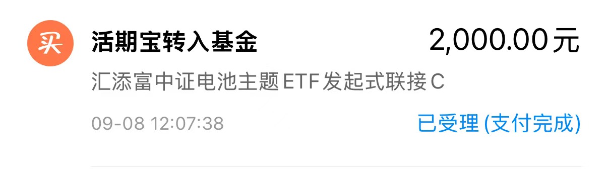 今日买入2000元$汇添富中证电池主题ETF发起式联接C(OTCFUND|012863)$,近期cpo等热门赛道回落,资金高低切,电池方向具有明显的优势,现在的电池就是前期的光模块和芯片,新能源四大天王宁德时代、阳光电源、亿纬锂能、先导智能相当于之前的寒武纪、中际旭创、新易盛、中芯国际了,估值相对合理,汇添富中证电池指数上周五场内率先涨停其主要原因可能是成分股更优质更集中,它跟踪的CS电池931719.CSI有25%的储能概念,阳光电源权重接近15%,锐度高,更有弹性,而其他指数没有阳光电源,业绩方面,短线爆发较强,近一周、近2周涨幅同类排行靠前,且认真比较下综合费率同类最低,性价比较高,因此今日小羊抓紧加仓,抓住这波新的赛道机会。