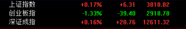 家人们,今天早盘创业板回调幅度较大,截至午盘,沪指涨0.17%,深成指涨0.16%,创业板指跌1.33%,沪深京三市半日成交额16815亿元,较上日放量2856亿元,全市场超3300只个股上涨,成交量和市场情绪还是比较不错的,小羊看好本周的行情,预计可能会逐渐走好。