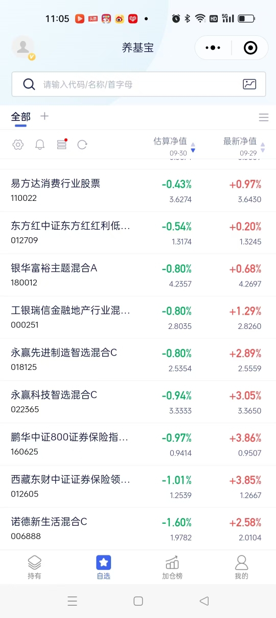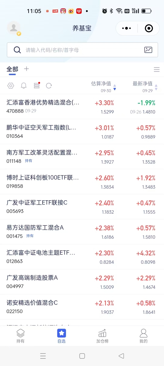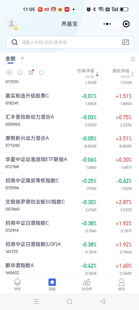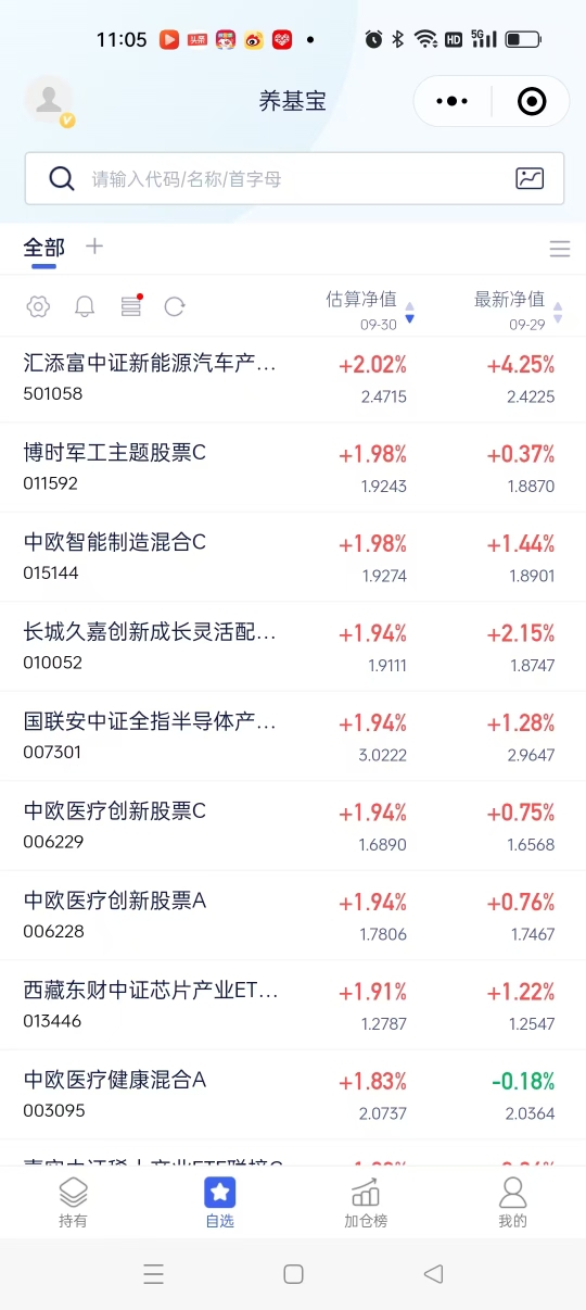 今天我估计不会操作买和卖了,我会留着各基金等节后再度上扬。同时也祝各位投资者粉丝们国庆节和中秋节快乐!