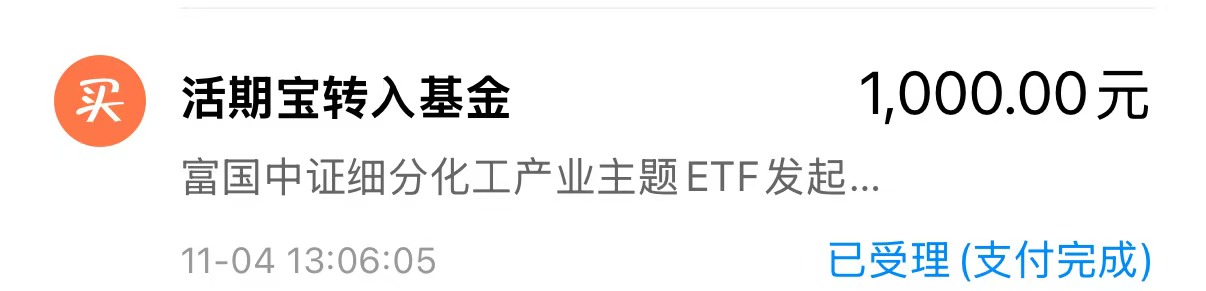 加仓1000元$富国中证细分化工产业主题ETF发起式联接C(OTCFUND|020274)$,该基金是被动指数型投资风格,近一年收益22.65%,跑赢细分化工指数,它覆盖高分子新材料、精细化工等高技术壁垒领域,例如常青科技等龙头的高分子材料创新技术,契合当下新质生产力发展方向和制造业升级趋势,叠加现在干细胞治疗、类器官技术等新兴领域对于化工材料的市场需求不断增长,该领域具备产业链升级潜力,后续发展前景良好,因此作为个人持仓组合配置是个不错的选择,当下行情中细分化工正处于上涨中的阶段性调整,回调即是机会,今日小羊上车,观察后续行情,及时捕捉机会。