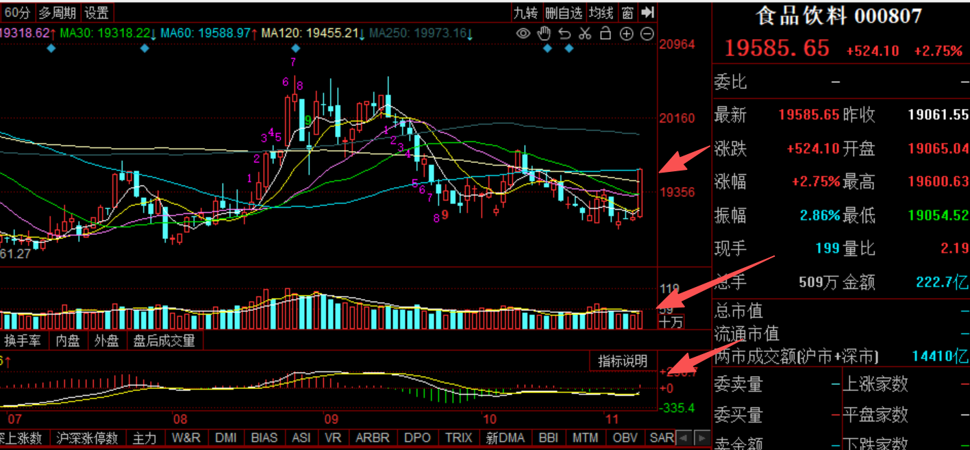 消费今天领涨,cpi数据直接利好消费板块,食品饮料涨超2%,成交量大增,macd和sar金叉形成,资金抄底信号明显,小羊前期已经布局了食品饮料和白酒,目前是浮亏1.8%,现在数据好起来了,行情可能也要开始了,今年日也跟上节奏,把部分机器人方向持仓转入食品饮料,转永赢一半仓位到食品。