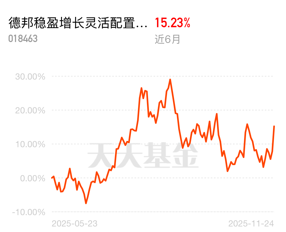 市场行情起起落落,能持续赚钱的基金才是真靠谱,软件赛道近期表现亮眼。德邦稳盈增长灵活配置混合C近6个月收益15.23%,稳赢宝宝站起来了,灵活调仓跟着行情走,不管市场怎么变,都能稳稳拿收益。$德邦稳盈增长灵活配置混合C$