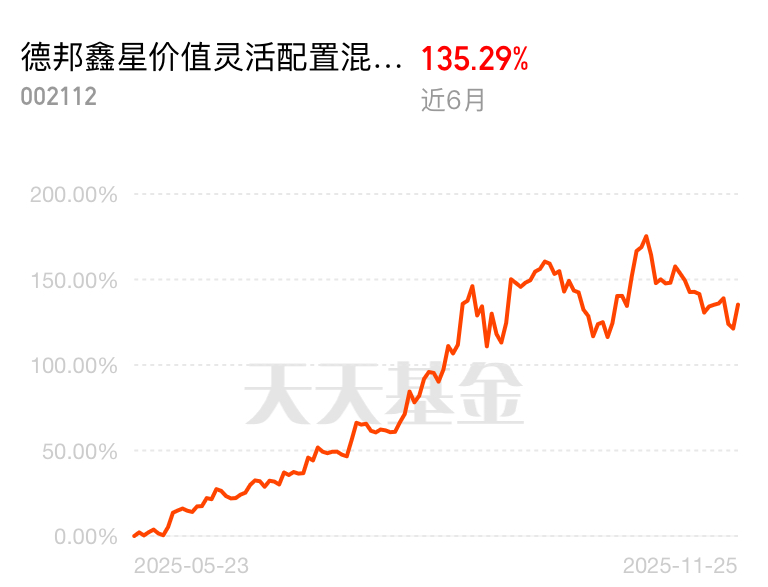 CPO继续大涨,整个产业链都受益,赚钱效应拉满全场。德邦鑫星价值灵活配置混合C近6个月收益135.29%,四大天王里它最猛,跟着这只优质基金,轻松把握市场红利。$德邦鑫星价值灵活配置混合C$