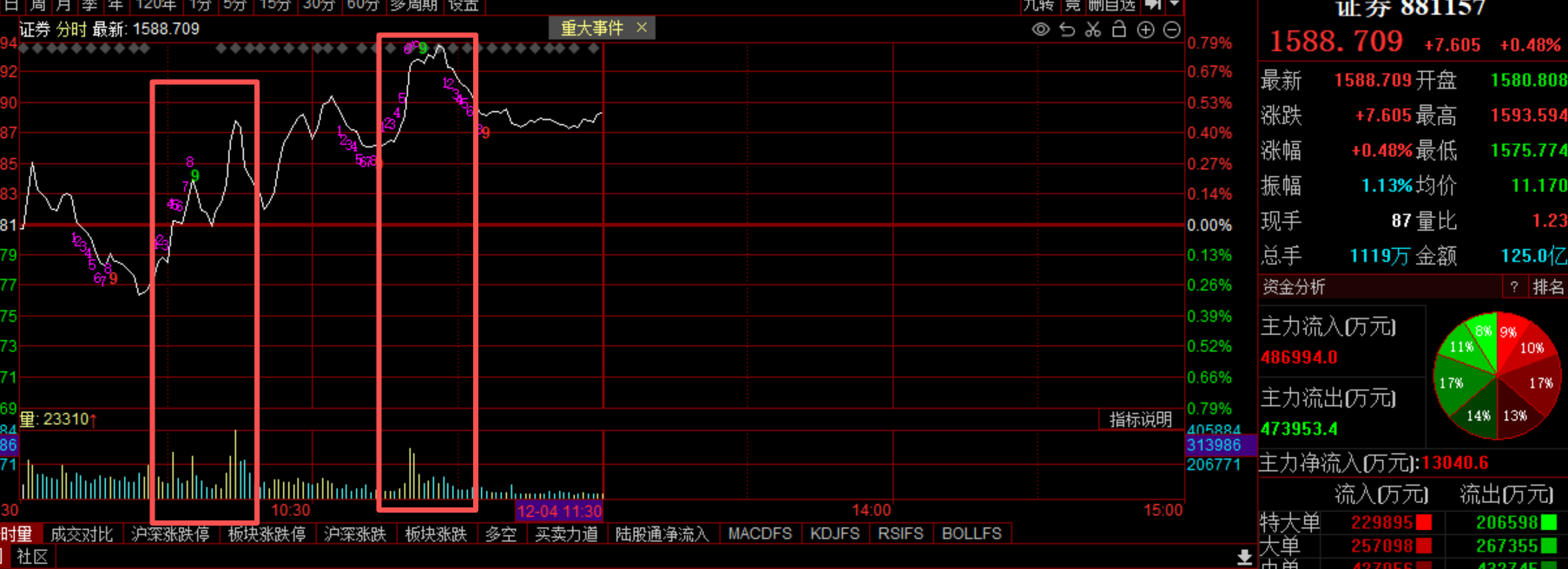 朋友们,早盘证券率先护盘,9点55分开始拉升,随后半导体跟上,市场成交量才开始释放,收盘三大指数都红了,沪深京三市半日成交额10402亿元,较上日缩量354亿元,全市场近3500只个股下跌,在证券拉升护盘的同时有其他赛道跟上,却整体风向好转,就是好现象,说明市场信心逐渐增强,但依旧不够,成交量整体是缩量的,证券的拉升也有限,没有表现出很强的动力,短期护盘可以,长期这样的话上涨缺乏持续性,因此现阶段就是等待彻底筑底成功的反转。