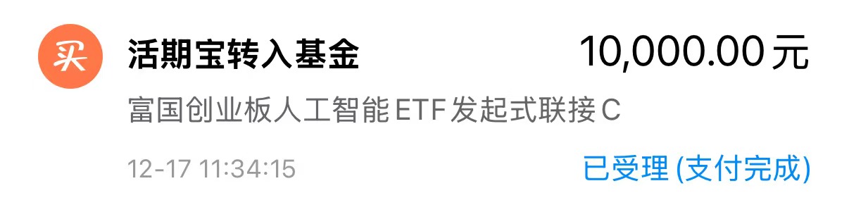 今日加仓10000元$富国创业板人工智能ETF发起式联接C(OTCFUND|024663)$,最近自动驾驶大消息,国内首批L3准入,即将开始上路试点,人工智能是当下全球科技方向热门新兴技术,国内市场的抢占一定会成为热门话题,叠加政策明确指出扩大内需成为明年的重点经济任务,人工智能面临产业发展和升级的良好契机,“AI泡沫”将不攻自破,今日创业板人工智能大涨,成交量大幅增加,上涨空间再次打开,该基金聚焦创业板AI技术研发、应用等产业链核心环节,软件含量高,以光模块+AI应用为主,将直接受益于扩大内需政策和技术革新的红利,叠加国产GPU的加速上线,也为国内人工智能的发展提供了良好条件,2026年或又将是AI发展的黄金期,小羊布局上车后目前收益5.22%,今日直接梭哈1万,博弈明年人工智能的大涨。