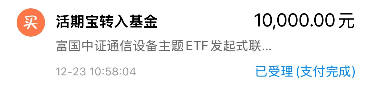 今日加仓10000元$富国中证通信设备主题ETF发起式联接C(OTCFUND|021934)$,昨天大涨3.57%,近期一直也是跌少涨多,看到机会后小羊上周追涨上车,目前收益3.14%,但个人预估上涨潜力较大,该出手时就该出手了,该基金聚焦通信设备产业链,覆盖通信设备制造、技术服务及卫星互联网等前沿科技领域,受益于全球5G基站建设加速和国内卫星互联网招标启动等利好,叠加近期商业航天热度急剧上升,相关企业订单增量,市场需求预期大幅增加,正值当下最好的热点窗口期,因此近期呈现出反转趋势,近一个月涨幅26.93%,近6个月涨幅105.26%,实现翻倍的超额收益,短线爆发力较强,业绩表现优秀,结合当下卫星互联网被纳入新基建范畴,朱雀系列火箭试验加速低轨星座建设,2028年前后预计会迎来组网高峰期,因此再次之前该基金可能还会又一波超额收益机会,长期持有依旧有较大空间,因此今日小羊大幅抄底加仓,博弈预期落地。