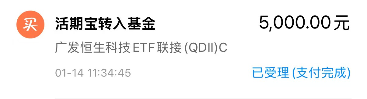 加仓5000元$广发恒生科技ETF联接(QDII)C(OTCFUND|012805)$,港股科技终于开始涨了,好饭不怕晚,A股科技已经涨了一年了,港股科技目前正处于底部,估值相对较低,潜力大,风险小,正是是抄底布局的好时机,该基金密切跟踪恒生科技指数,聚焦港股市场互联网、人工智能等新经济领域龙头,都是当下的热点方向,且相对于A股来说位置低,再接下来港股的估值修复中,上涨空间大,充分收益于本次牛市技术创新的优势,作为被动跟踪型基金,运作透明度高,费率低于主动管理型基金,适合抄底布局的中长线的操作,今日小羊抄底黄金底部,博弈恒生科技爆发。