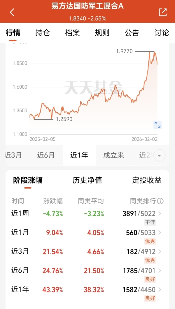 随着SpaceX与xAI合并,对军工赛道产生显著利好,进一步显著提升国防订单竞争力,相关龙头更是全线走高,而我发现$易方达国防军工混合A$ 前十大重仓集中于航天装备,高度聚焦军工核心赛道,兼顾了弹性、稳健的双重优势,还长期受益于装备升级与国产化双重红利,我也打算上车了!