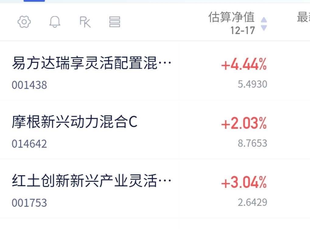 今日大盘开启反弹动力,三大指数集体上涨反弹,创业板指涨幅超1%,其中CPO赛道涨幅领先,特别是我看好的$易方达瑞享混合E$ 目前实时估值大涨4.44%,远远跑赢同类平均涨幅,自成立以来涨超400%,可见爆发能力很强,而我也将长期看好这一赛道,期待后期满满收获!