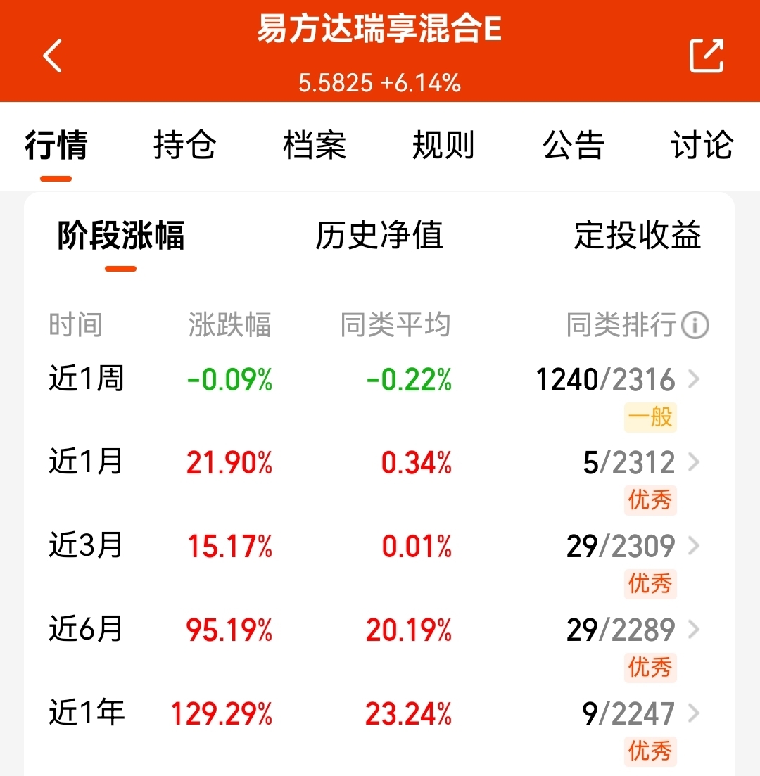 这支$易方达瑞享混合E$ 也持仓CPO龙头为主,主动一个高收益弹性,而且资金信仰集中,短期调整后,修复也会很快,这支近1年已经涨129.%了,大幅跑赢其他板块,我觉得这赚钱效应还是可以滴!