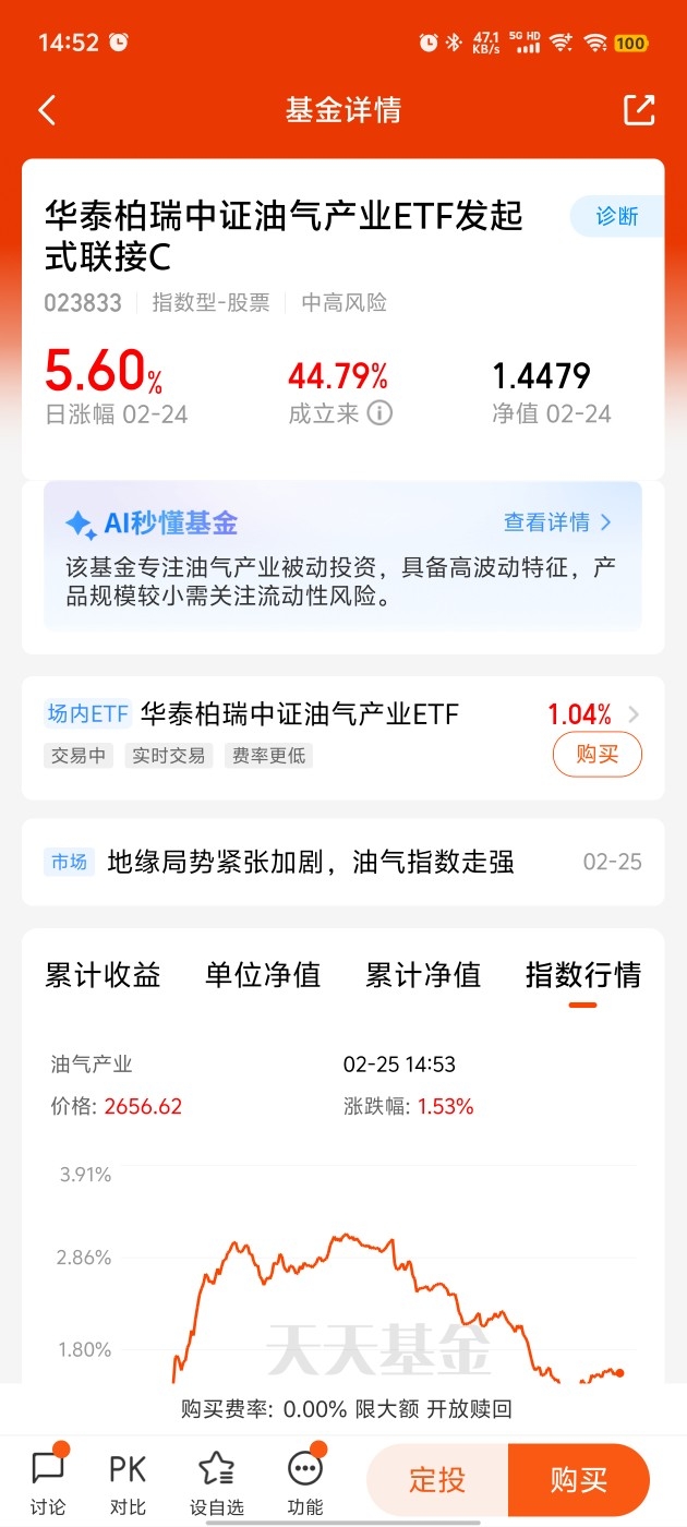 这波油气行情持续性真的不错,今天继续保持上涨势头,市场认可度越来越高。和其他波动大的板块比,油气更稳,逻辑更硬,不管是短期机会还是中长期配置,都有看点。不想折腾选股的朋友,直接借道指数基金就很方便。华泰柏瑞聚焦油气,贴合行情走势,分散风险,适合稳健型朋友长期布局。