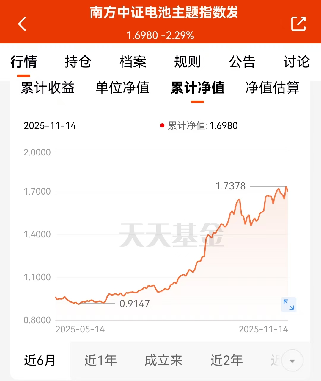 周期这东西,新能源熬了三年调整,现在终于迎来新周期。$南方中证电池主题指数发起C$(018927)近一月涨15%,同类排名前0.1%,说明资产都在往这挤。它的关键优势是固态电池含量高,未来电池要变天,全固态能量密度翻倍,安全性更强,这基提前卡位技术升级。而且指数化布局分散了个股波动,赚的是行业趋势的钱。数据上看,成立以来年化回报31%,夏普比率1.72,性价比摆着,趋势刚启动,拿住就行。#杨德龙:4000点或是新一轮行情的起点#