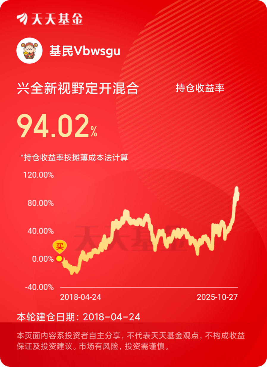 私房钱18年买的,目标是一万变两万,前段时间到了目标,又跌了一点,刚刚好开放就赎回了,满意的一次投资,一年以后再投资了。感谢基金经理,祝我们国家经济发展越来越好,人民安居乐业!
