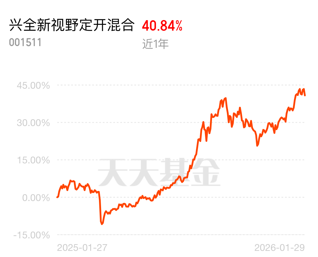 兴全新视野定开混合的长期业绩很能打,近1年40.84%的收益,夏普比率1.86,