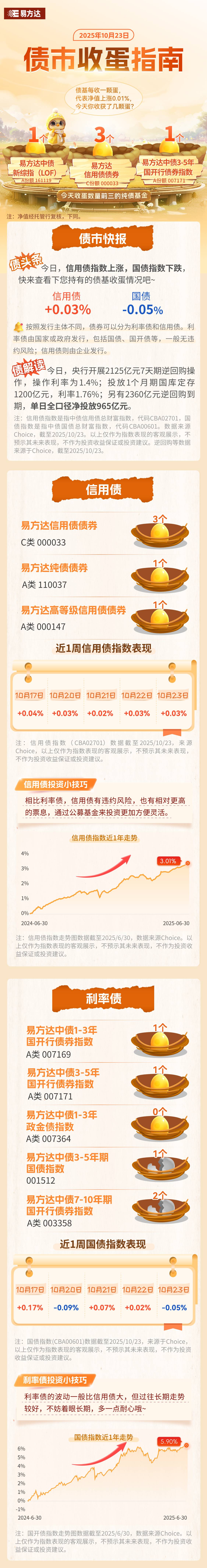 【债市收蛋指南】10月23日,信用债指数上涨、国债指数下跌