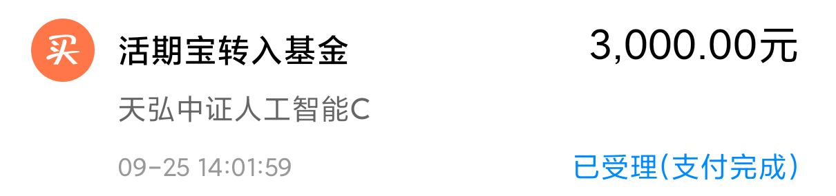 买进3000的 $天弘中证人工智能C(OTCFUND|011840)$