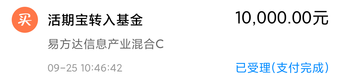 买进10000的 $易方达信息产业混合C(OTCFUND|019018)$