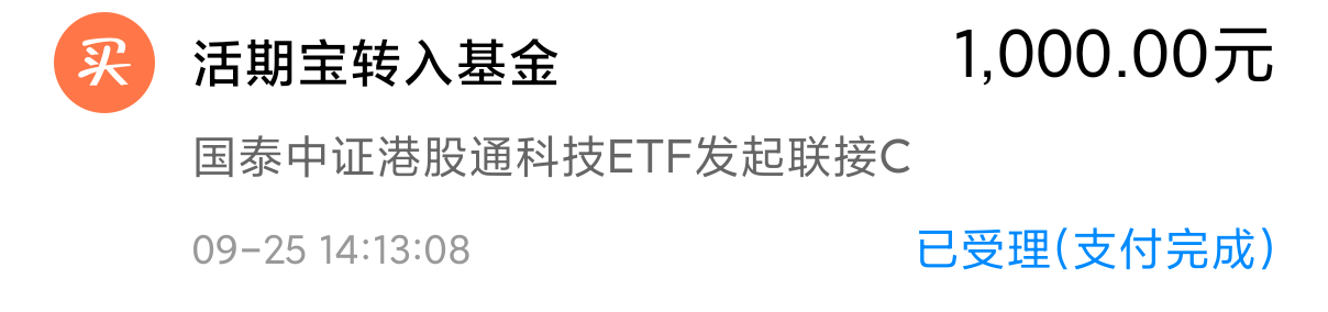 加仓,买进1000的 $国泰中证港股通科技ETF发起联接C(OTCFUND|015740)$