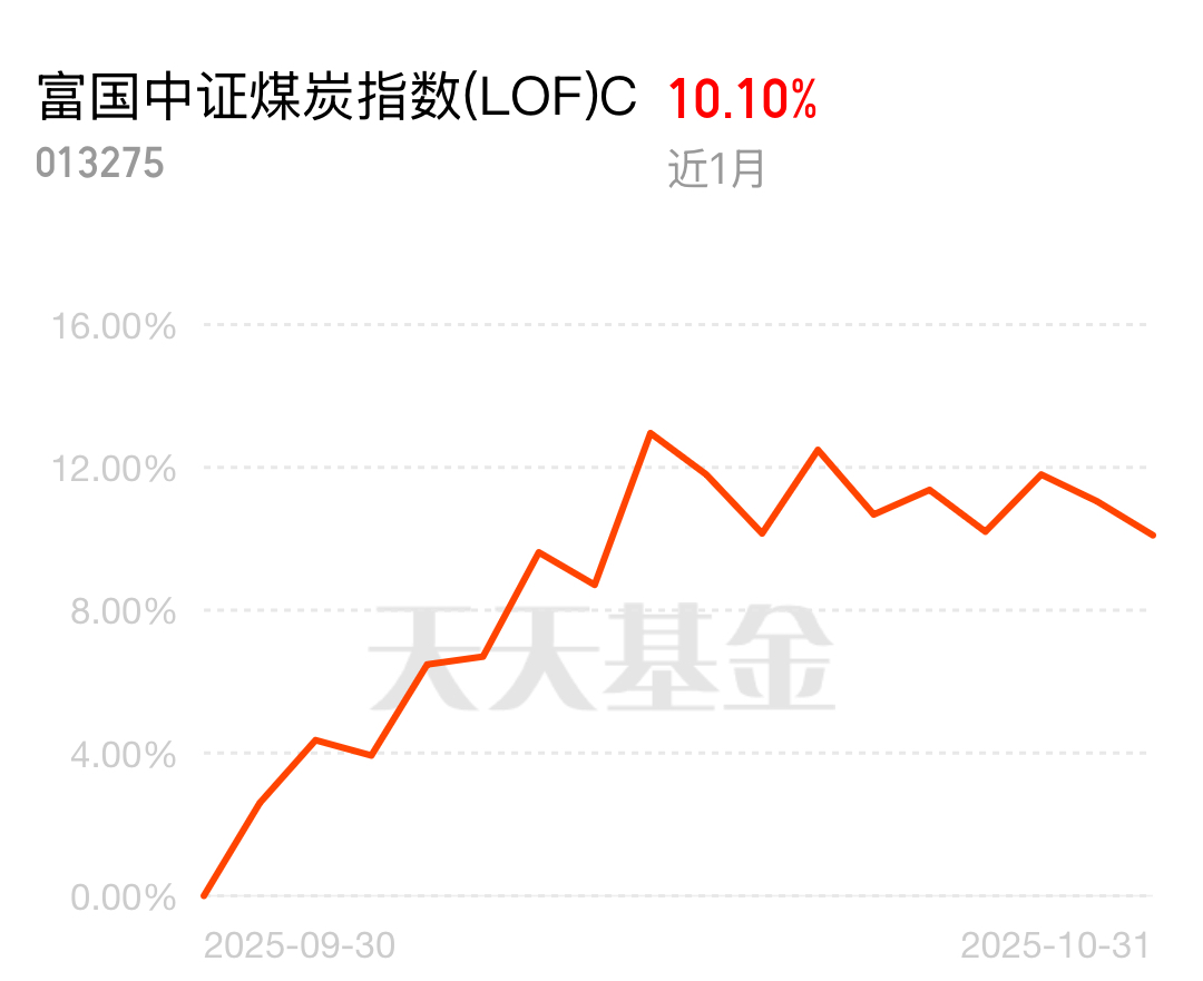 持仓广发小盘成长A的同时,悄悄配了点富国中证煤炭C这月涨了10%,跑赢一堆同类,