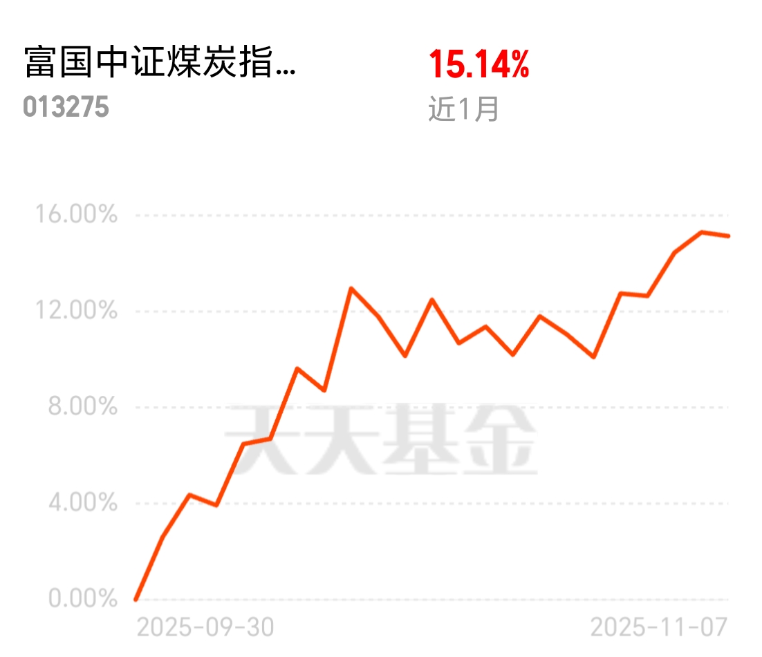 配了点富国中证煤炭C,央企煤炭打底,顺周期里弹性足,0.44%跟踪误差跟得紧,近一个月飘红了15%,跑得稳不少同类。$富国中证煤炭指数(LOF)C$
