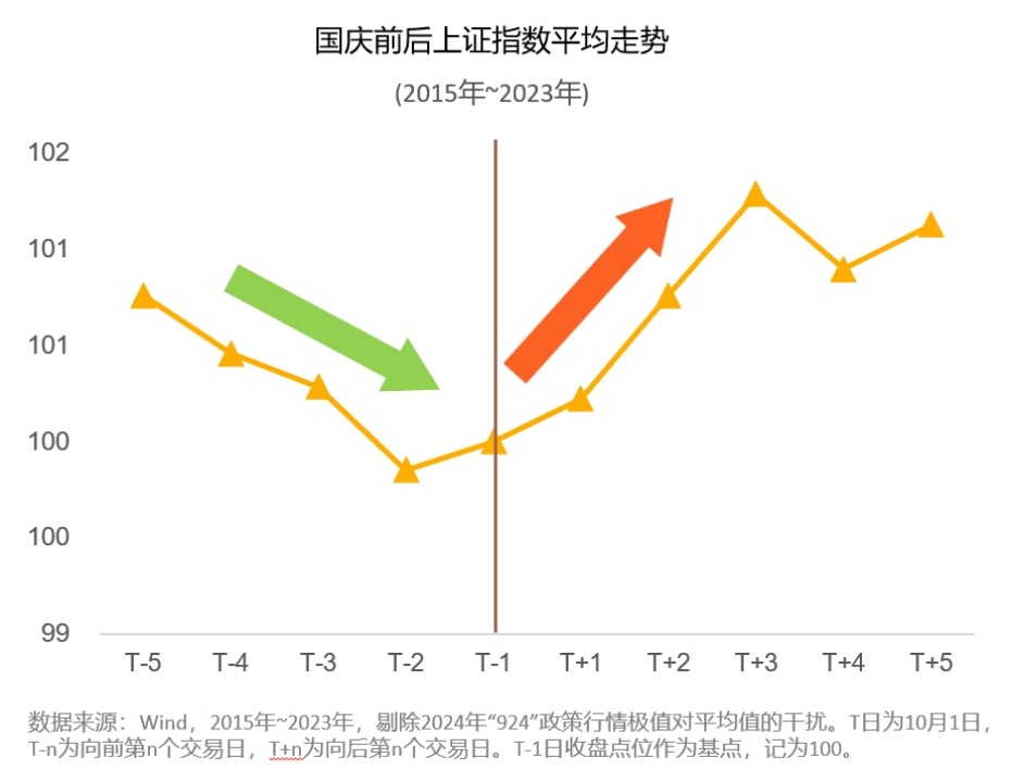 从历史数据来看,国庆后A股上涨的概率相当高,大家可以参考“国庆前后上证指数平均走势(2015年-2023年)”图,能更直观地感受这一规律。