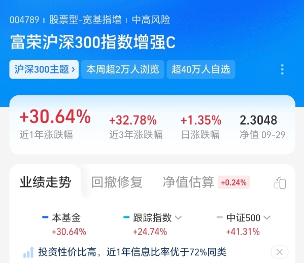 最近股市震荡多,慢牛买指数还是省心,富荣沪深300指数增强C(004789)$富