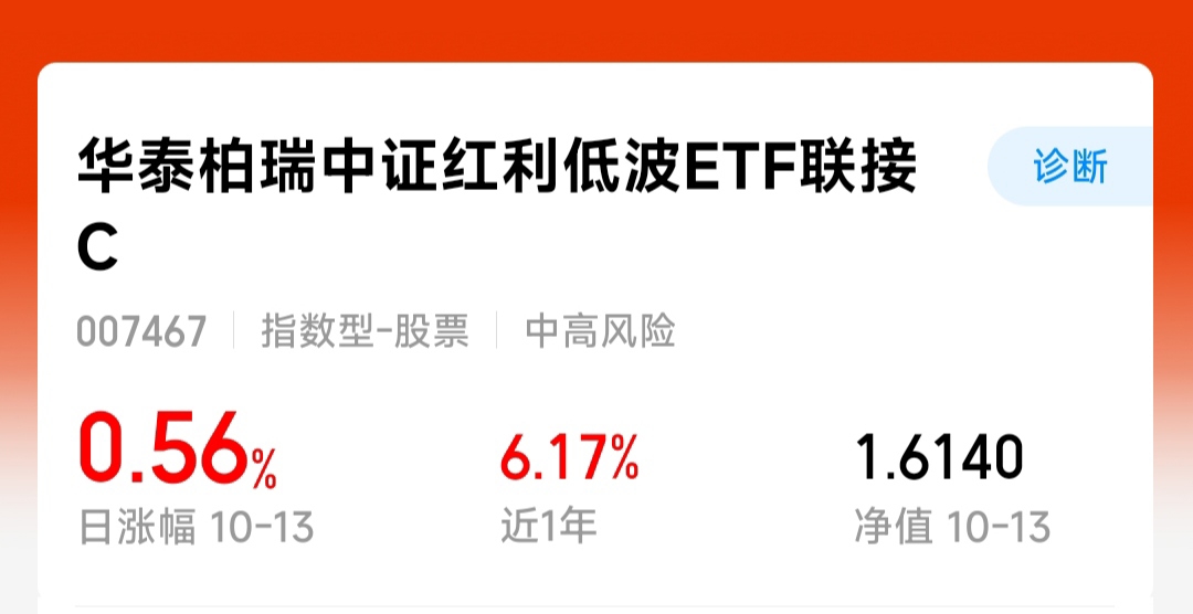收盘看了眼持仓,$华泰柏瑞中证红利低波ETF联接C$成为万绿丛中一点红。历史回测