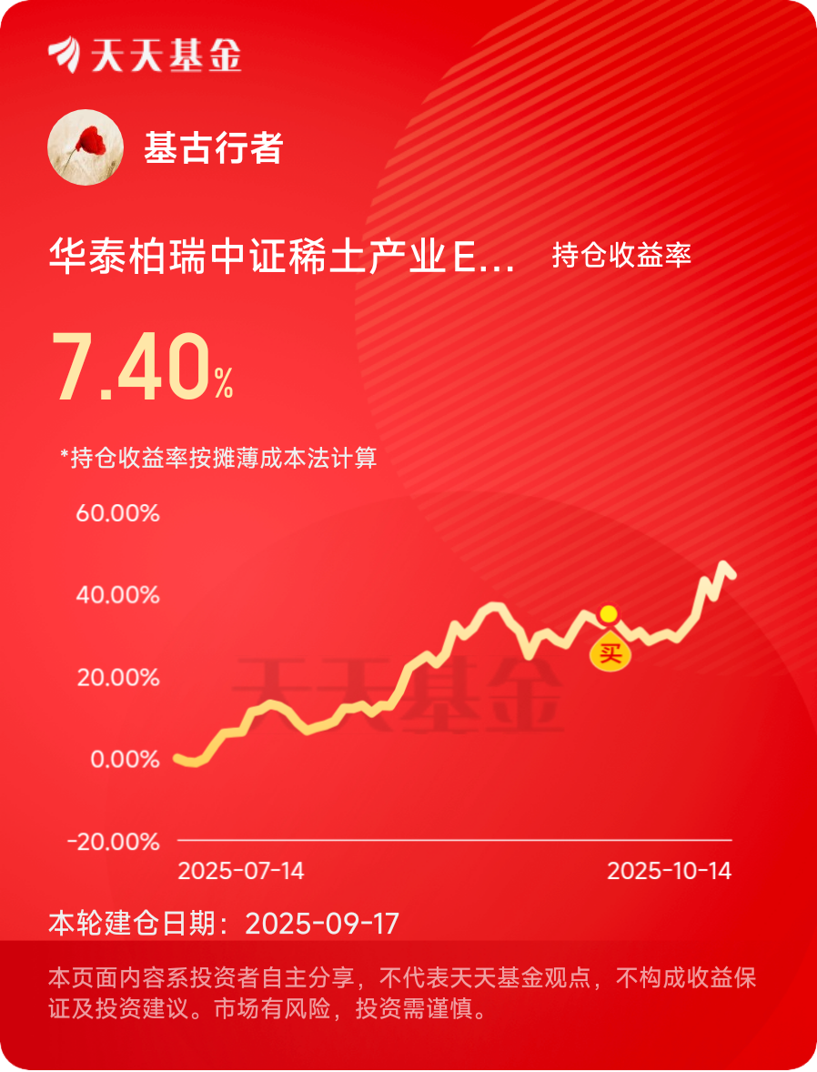 华泰中证稀土近三个月44.55%的收益真给力!近一年更是88.12%。关税反制逻辑下,稀土板块每次调整都是布局良机。$华泰柏瑞中证稀土产业ETF发起式联接C$ #晒收益# #3900点得而复失!A股风格要改了?#