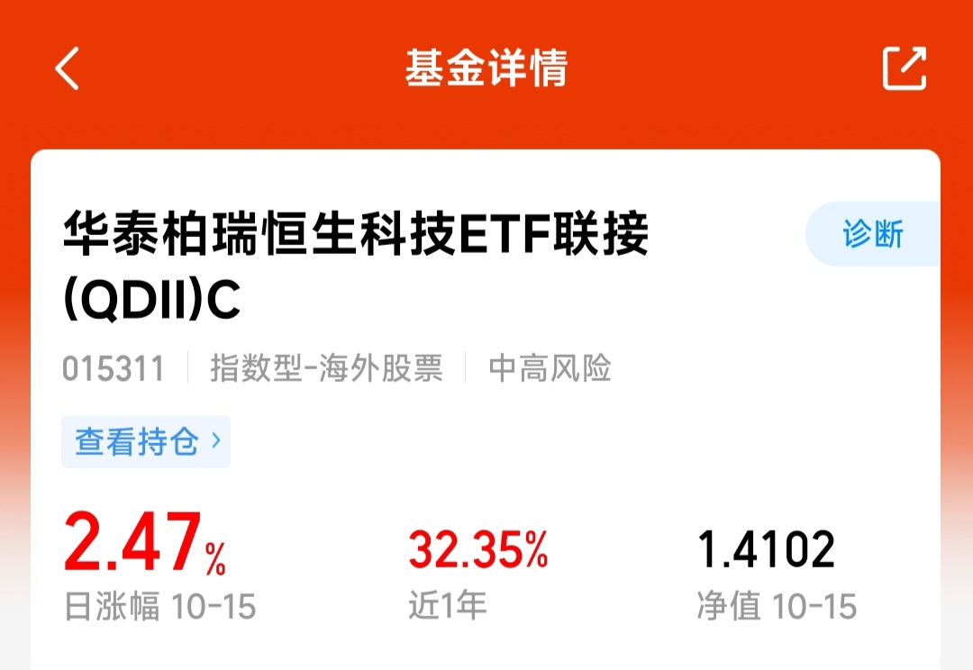 #创业板指# 看到$华泰柏瑞恒生科技ETF联接(QDII)C$ 今日收涨2.47%。在美联储放鸽与国产替代双主线驱动下,恒生科技当前位置提供了很好的风险回报比。