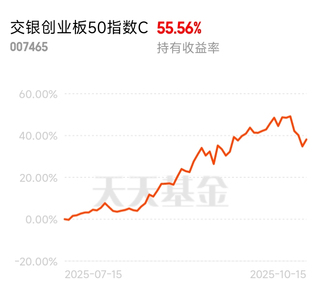 $交银创业板50指数C$目前收益率达55.56%,还是很不错的,创50弹性大,收