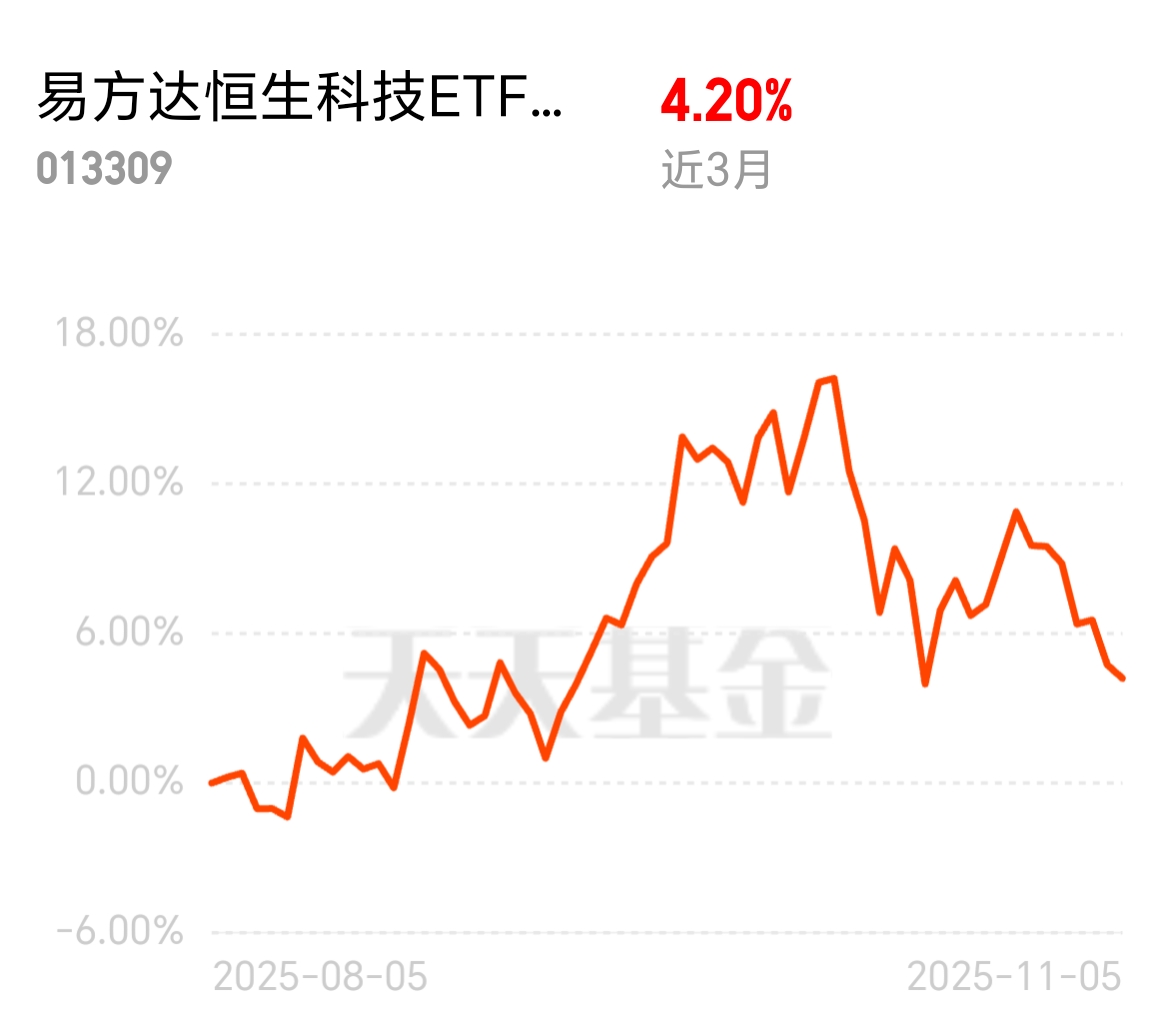 港股市场情绪回暖前,科技板块经历了一波估值回调,现在性价比越来越突出。易方达恒生科技ETF联接(QDII)C近3个月上涨4.20%,在估值到位的当下布局,既能分享科技行业的成长红利,又不用承担过高风险,对普通投资者很友好。