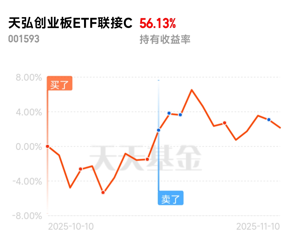 这两天先清这个创业板,昨天全卖了,盈利4万多,卖的今天逐步加到另两个创业板50。$天弘创业板ETF联接C$