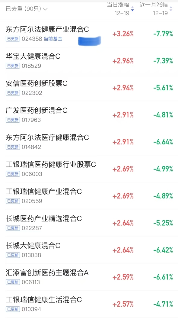 创新药回调之后开始上涨,东方阿尔法健康产业投资创新药收益高一些。