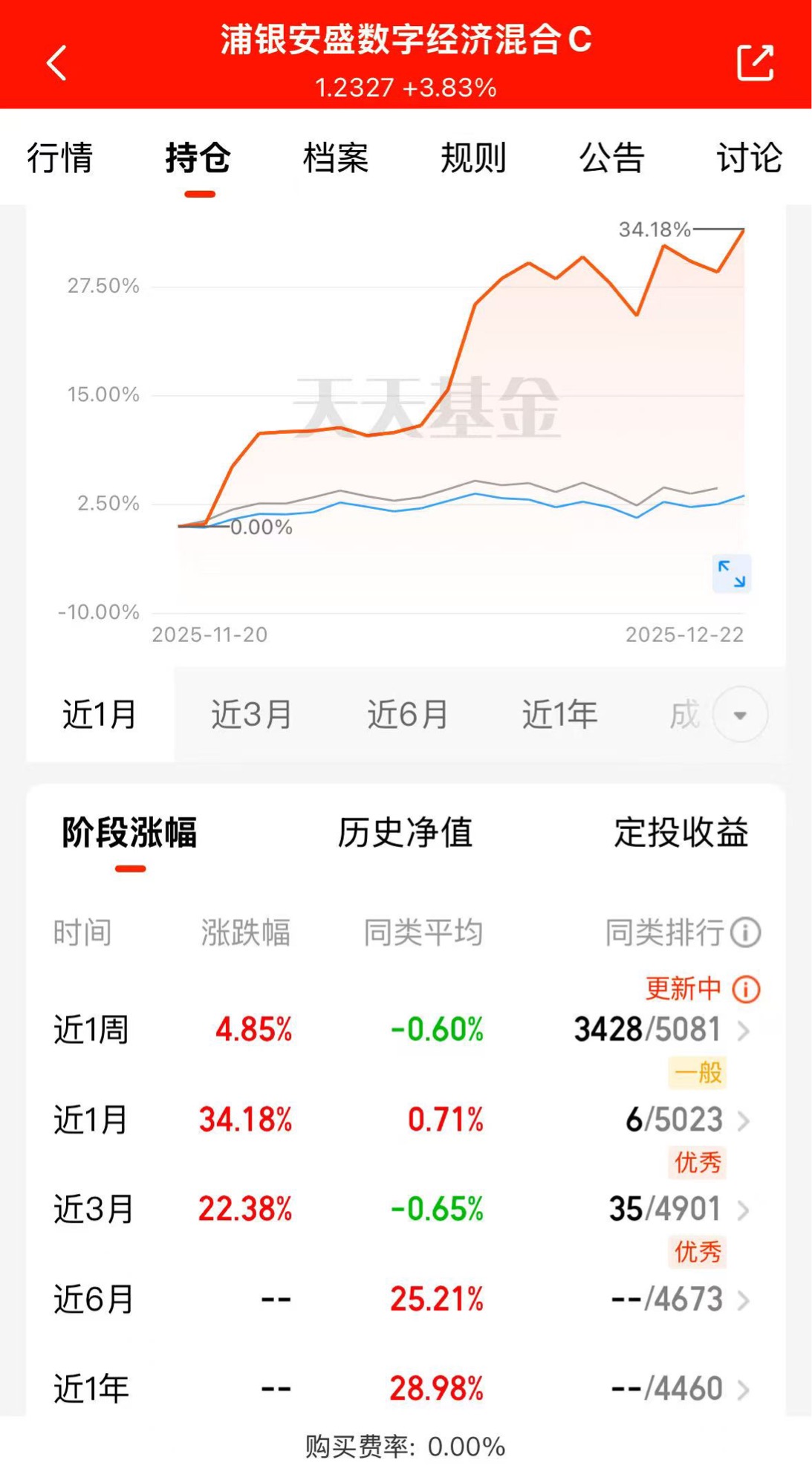 CPO新晋卷王$浦银安盛数字经济混合C$大涨3.83%,从业绩看这个基应该持仓主