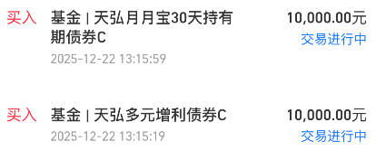 我加仓$天弘多元增利债券C(OTCFUND|015525)$10000元!最近讨论区或财富号经常发的大包是真的香啊,10万-198.88、1万减16.88,我主要是子弹不多了,不能一下存10万,所以就每天领了存上1万元,舍不得浪费包包!