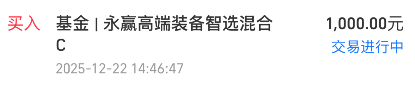 我加仓$永赢高端装备智选混合发起C(OTCFUND|015790)$1000元,今天科技方向涨的好,商业航天就显的弱一些,难得这会看净值估算没有涨太多,我赶紧上车一笔,之前连续上涨8天都没啥加仓机会,这次小调整2天后又要3连涨了,看来有调整就得抓紧上,涨起来真是不等人的。