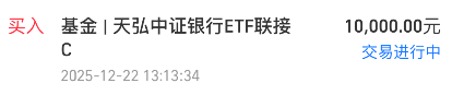 我加仓$天弘中证银行ETF联接C(OTCFUND|001595)$10000元,题材涨的好,防御配置我也不能少,趁跟踪的中证银行指数这会看跌0.4%左右,我果断大额加仓一笔,银行具备防御属性,股息率约6%也比较高,日常波动感也比较小,估值还比较低,我觉得适合做资产的底仓配置!