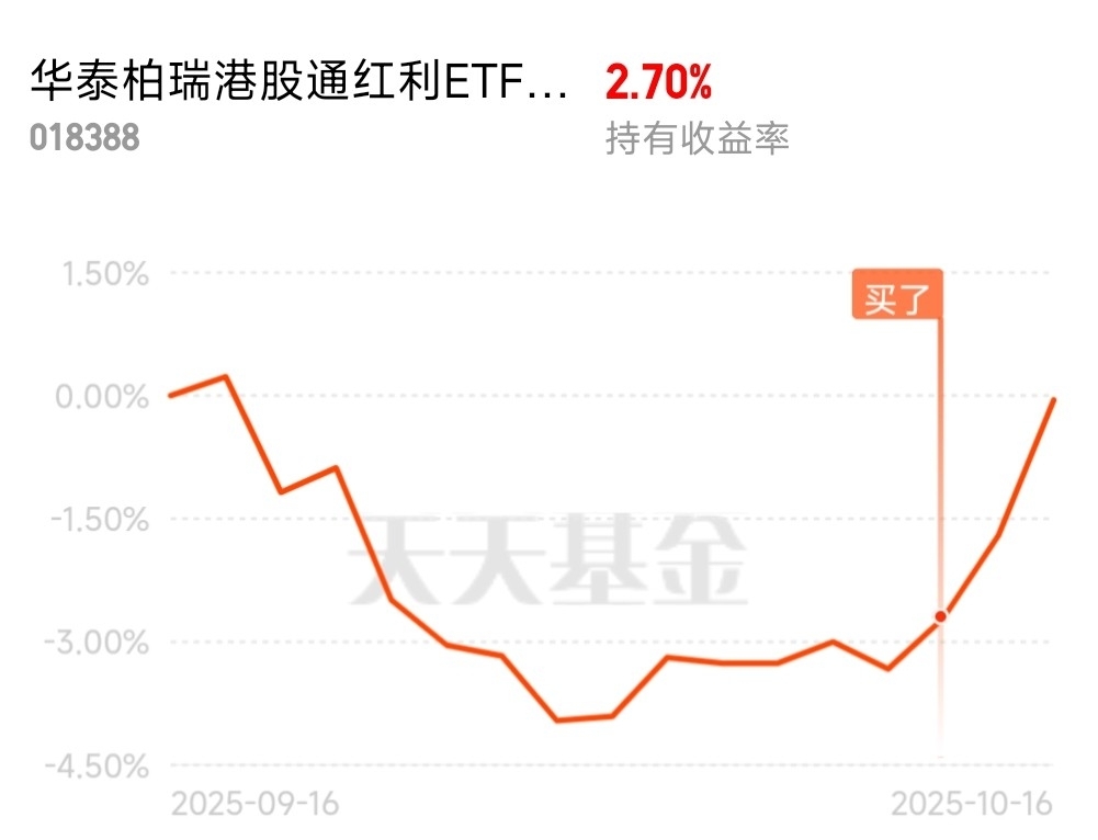 $华泰柏瑞港股通红利ETF联接基金C$今日强势上涨1.67%,豪取三连涨。在当前