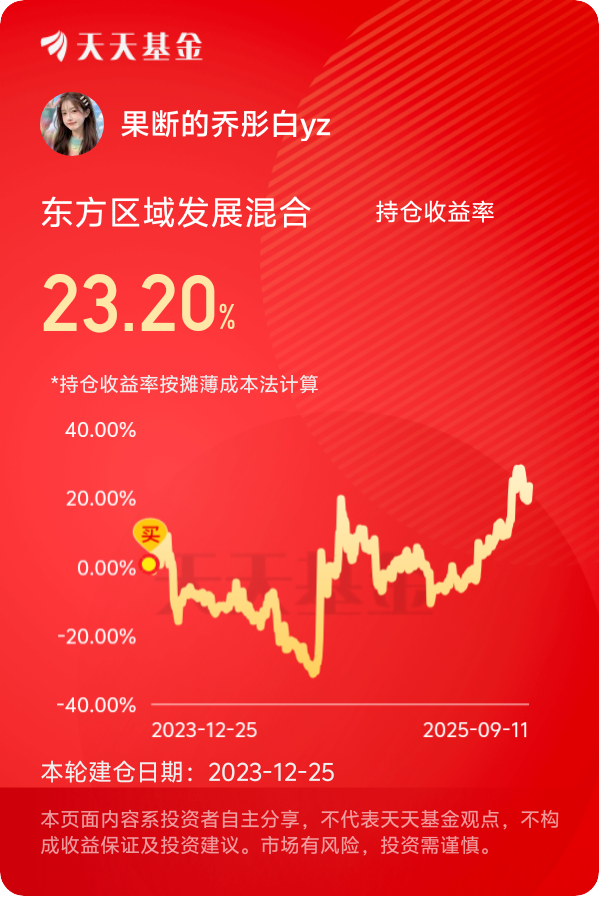 没想到区域回调了,前面买的少了些,刚好趁这个机会可以补一补的$东方区域发展混合$ #晒收益#
