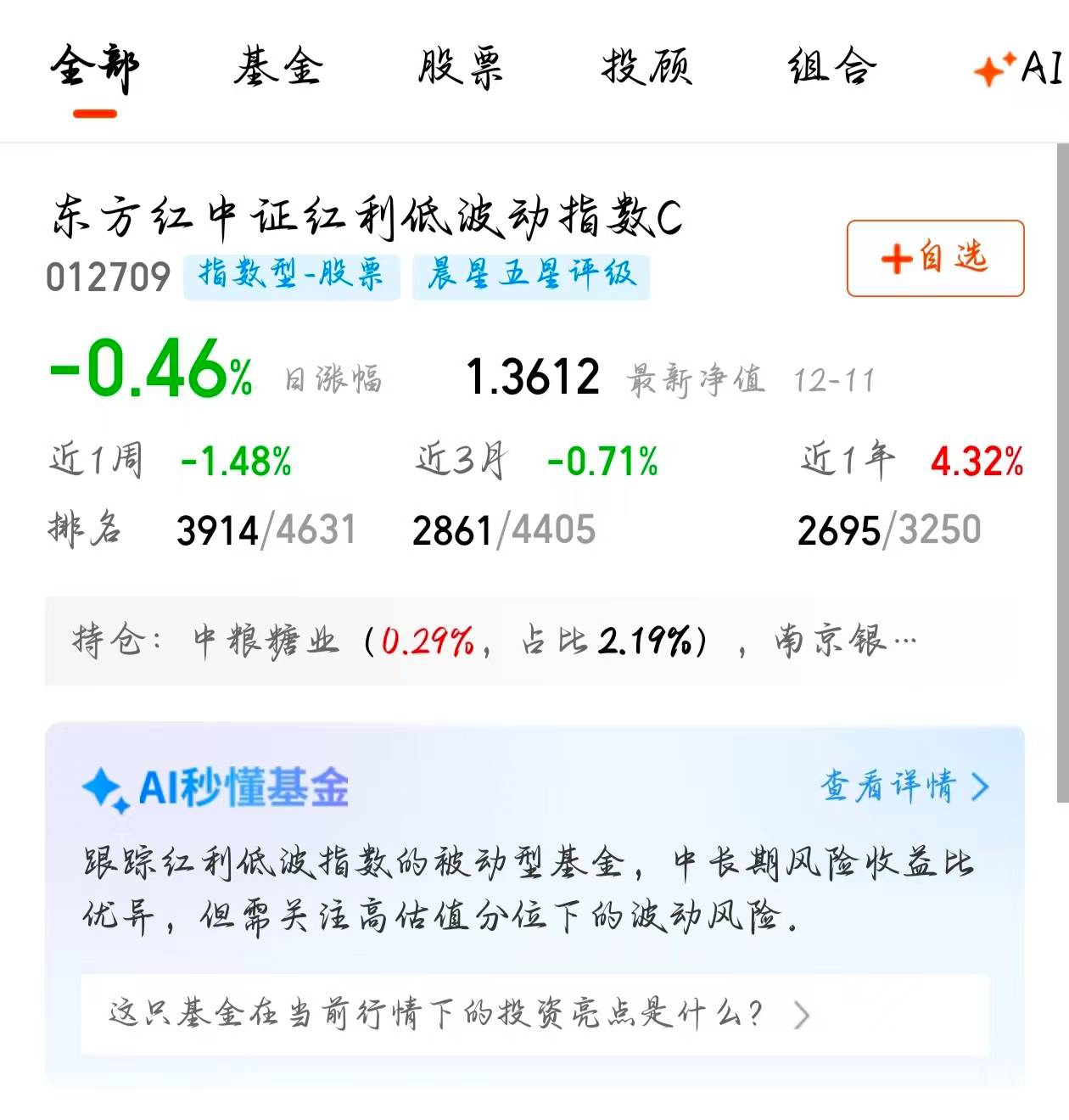 年底想让资产稳稳增值,就别错过东方红中证红利低波动指数C,现在市场调整正好捡便宜,红利策略靠谱,降息周期里这类资产的表现不会差。