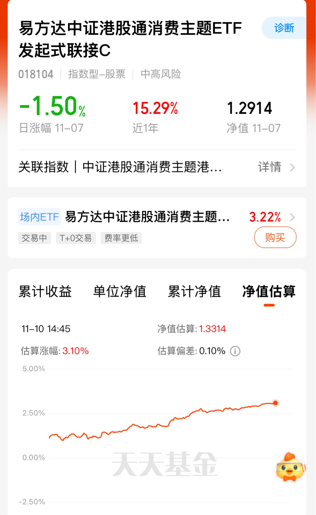 核心 CPI 上涨 + 免税新政利好不断,消费涨得好了 $易方达中证港股通消费主题ETF发起式联接C$