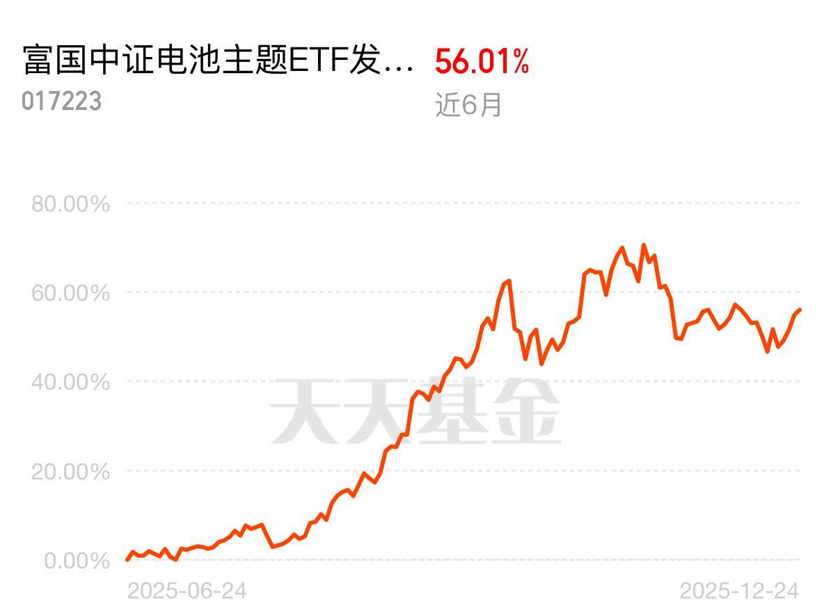 食品饮料看消费复苏,电池看制造出海。富国中证电池主题ETF联接C近6个月涨56%